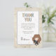 Celebrate your little one on the way with this magical baby shower thank you card featuring a sweet chibi-style illustration inspired by Hermione Granger from the Harry Potter series. The design showcases the clever witch wearing her Gryffindor robe and holding a wand, surrounded by pastel starburst accents. A parchment-style texture frames the invitation details, while the back is decorated with whimsical wizarding icons like books, cauldrons, and magical creatures. Customize with your names and message to create an enchanting thank you card perfect for any Harry Potter-loving family.