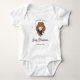 Celebrate your little one on the way with this magical baby shower baby bodysuit featuring a sweet chibi-style illustration inspired by Hermione Granger from the Harry Potter series. The design showcases the clever witch wearing her Gryffindor robe and holding a wand, surrounded by pastel starburst accents. Customize with the baby's name and expected date to create an enchanting announcement perfect for any Harry Potter-loving family.