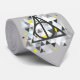 Check out this geometric styled Deathly Hallows symbol, surrounded by gray, yellow, and blue triangle.