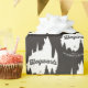 Karo aus dieser Hogwarts Burg Silhouette, mit dem Namen "Hogwarts" in kursiver Schrift. Die Wörter "Schule der Hexerei & Zauberei" werden unten mit einem Paar gekreuzter Greifsteine geschrieben.
