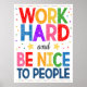 hart arbeiten und nett sein, Klassenzimmer Poster