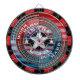 Dieses anpassbare Dartboard ermöglicht es Ihnen, das Herzstück durch Ihr eigenes Logo oder Bild zu ersetzen. Im Design steht das Motto Work Hard Play Hard in den USA, das auf (Imitate) Metallringen steht, die über einem amerikanischen Fahnen-Set auf einem Hintergrund stehen, der das "letzte Glanzstück der Twilight" darstellt. Ein großes Geschenk oder eine Anschaffung für jeden, der von Amerikas kühnem Geist der Selbstständigkeit und Exzeptionalität inspiriert ist.