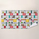 Dieses Handtuchhandtuch-Set ist in einem modernen Design aus der Mitte des Jahrhunderts gehalten, das aus einem Gitter mit schwarzen Linien besteht, die in Retrofarben auf einem weißen Feld Quadrate und Rechtecke aufweisen.