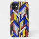 Dieses farbige Glastelefon hat ein Art-Déco-Pfeile in Primärfarben mit Akzenten aus schwarzem und klarem Glas. Das ist kein Foto aus einem Glasfleck; das ist alles digital gefertigte Kunstmuster, das auf einem Computer gemacht wurde. Das ganze Glas ist strukturiert, um es im Musterdesign sehen zu können. Sie können das Muster vergrößern oder verkleinern.