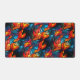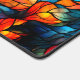 Diese Schreibtischmatte hat ein Buntglasdesign darauf.