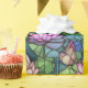 Schönes Verpackungspapier mit einem nahtlosen Lotusmuster im Buntglasstil.