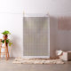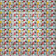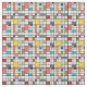 Dieser Stoff hat ein modernes Design von einem Gitter aus schwarzen Linien mit Quadraten und Rechtecken in Retro-Farben auf einem Feld von weiß.