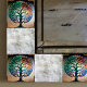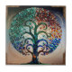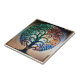 Der gestanzte Glasbaum mit antiker Goldbesetzung ist mit einer Kachel mit Buntglasaussehen, lebhaften, komplizierten Fliesen, Flickwerk und Kofferraum kaleidoskopisch mit Smaragdgrün, Saphir Blau, Bernstein und Krimson, Set vor einem subtilen, gestuften Hintergrund, der vom sanften Morgengrauen zum Mitternachtshimmel wechselt, mit zarmigen, zarmigen, wirbelnden Mustern Jugendstil-Cent, die Blätter und Blume des Baumes, die aus Hunderten von kleinen, glitzernden Stücken hergestellt wurden. Viele Anwendungen für diese wunderbaren Keramiken Fliesen. Erhältlich in 2 Größen 4,25" x 4,25 " und 6" x 6".
