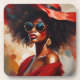 Afroamerikanische Untersetzer mit einer raffinierten, roten und beigen Frau