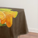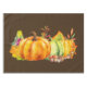 Tischdecken mit Aquarellbild von Kürbissen und saisonalen Herbstblättern. Brauner Hintergrund.