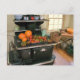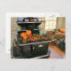 Auf dieser Postkarte befindet sich ein alter Kochherd aus Glenwood mit einer Sommerernte von Squash und Tomaten.