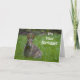 Dieses wilde, bräunlich-graue Kaninchen war überrascht, mich zu sehen. Er sitzt auf einem Feld des grünen Grases, mit einem Blatt des fast-gegessenen Grases, das noch Hälfte aus seinem Mund heraus hängt. Er starrt gerade entlang der Kamera an; seine hellbraunen Ohren erweiterten sich gerade heraus und eine Kante des weißen Pelzes darstellend um die Augen. Sie können sein Nasenzucken fast sehen! "Es ist Ihr Geburtstag" wird geschrieben an der äußersten Rechte des Bildes in weiße Beschriftung. Copyright Gail Storrs 2010.
