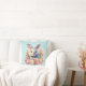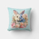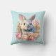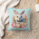 Kissen mit Wasserfarben-Motiv. Ein weiß-graues Häschen umgeben von einer Girlande aus rosa und pfirsichfarbenen Rosen. Für Hasenliebhaber und zu Ostern, Geburtstagen und Babypartys.