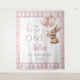 Diese charmante Rückwand zum 1. Geburtstag zeigt ein süßes Häschen, das Ballons hält, vor einem rosa Gingham-Hintergrund. Entworfen von Thisisnotme