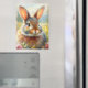 Dieser naturinspirierte Magnet zeigt ein leicht impressionistisches Ölgemälde eines runden Hasen auf einem Feld oder einer Wiese mit schönen Blumen. Die Farben sind weich und hell, eine Mischung aus erdigen und neutralen Tönen mit Rosa- und Gelbtönen, was es perfekt für Frühling, Ostern oder Sommer macht.