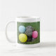 Gelbe, rosa und weiße, leuchtend farbige Golfbälle auf einem Foto von Sandy Closs am Arrowhad-See. Golf, Golfer, Golfen, "Golf Grobse", Frühjahr, "Sport", Ostern, Urlaub, "Osterei" pink, Golfer blau gelb Kaninchen Ostern