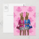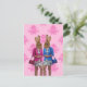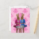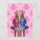 Die sonnige Collage von niedlichen sprechenden Kaninchenfiguren mit Kleider und blauen und rosa Jacken mit Handtaschen auf rosa Vintagem Damast-Hintergrund. Für passende Produkte und mehr lustige Tiercharakter besuchen Sie den VINTAGEPRINTSTORE.