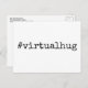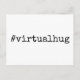 Du hast dich körperlich distanziert. Oder soziale Distanzierung. Es gibt viele Leute, die du umarmst. Diese Postkarte könnte nur dem kleinsten Teil helfen. Einfache Schreibmaschinenschrift in schwarz auf weiß liest #virtualhug. Ändern Sie den Text, wenn Sie möchten. Oder die Farbe. Oder Hintergrundfarbe. Oder der Schriftart. Machen Sie das Design zu Ihrem! Viel Spaß damit! Dann schicken Sie Ihre Karte an jemanden, den Sie vermisst waren.