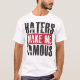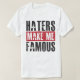 Hasser machen mich berühmt. Das ist recht; Hasser machen mich berühmt. "Irgendeiner schlechten Presse gehört von gute Presse"? Gut ist es im Allgemeinen das gleiche Konzept. Es gibt eine Vielzahl der Produkte, die von den T - Shirts, Shirts zu den Tassen reichen und mehr, die diesen Entwurf verwenden. Es ist ein großes Geschenk für jedermann nah an dem Erzielen dieses Ziels, um mithilfe der Hasser berühmt zu werden. Schließlich machen Hasser mich berühmt. Dieser Entwurf kommt in Rotes und in Blaues.