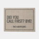 Dieses lustige Türdesign enthält die Worte "Hast du zuerst angerufen? Tschüss!" Personalisieren Sie diese niedlichen rustikalen Imitate bedecken die Türmatte mit Ihrem Familiennamen und persönlichen Gruß. Die perfekte moderne Hauswärmung oder das Geschenk neuer Hausbesitzer.