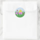 Hatching Duckling Happy Oaster Stickers By KCavender Niedliche Baby Duck, die gerade aus ihrem Ei schlüpfte, und sitzt in einem Feld von violetten Blumen mit den Worten Happy Oaster Overhead.