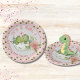 Hatching Dino with Pink Bow Baby Shower Plates Pappteller