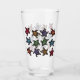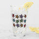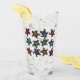 Dieser Glaswäscher für Getränke hat einen Haufen schwarzer Schildkröten mit abstrakten Markierungen auf ihren Muscheln, die in einer Vielzahl von hellen Farben auf der Vorder- und Rückseite sind.