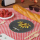 Diese Teller im Blumenchalkboard-Stil sind mit einem buntgekalkten Haufen von 3 kalkgezeichnet Mit Augen Susan-Blume mit bicfarbenen Goldblättern und Mahagoni-Blättern und benutzerdefinierten Textfeldern im Template-Stil von katz_d_zynes versehen
