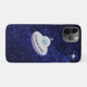 Alien und fliegender Untertasse auf unserer marineblauen Milchstraße Galaxy iPhone Case. Text kann personalisiert sein. Star kann individuell angepasst werden.