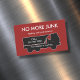 Simple yet powerful junk hauling and trash removal magnetic business card editable template with image of a hauling trailer and bold red background that stands out. A smart simple design.