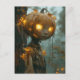 Das Bild zeigt eine überwältigend schöne Abbildung einer Figur mit einem Kürbis für einen Kopf. Der Kürbis ist sehr detailliert, mit leuchtenden Augen, die ein warmes, goldenes Licht ausstrahlen. Rund um den Kürbis und den Nacken sind zarte Weinberge und Drähte verstrickt, was einen unheimlichen und doch bezaubernden Effekt mit sich bringt. Die Figur ist in einem zertäterten, in Erdtönen gehaltenen Outfit gekleidet, das sich nahtlos mit der herbstlichen Umgebung verbindet. Der Hintergrund ist mit einem sanft leuchtenden Wald und abfallenden Blätter geschmückt und schafft eine geheimnisvolle und magische Atmosphäre.
