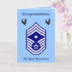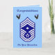 Hauptmeisterin sergeant Werbeaktion Card. Diese Karte ist mit den Insignien des Generalmeisters der US-Luftwaffe geschmückt, die von American Bald Eagles mit den Worten "Air Force" besprochen wurden. In der Karte erscheinen die Worte "Herzlichen Glückwunsch zu Ihrer Werbeaktion in der größten Luftwaffe der Welt" und "Mögen Sie immer blauen Himmel und schönes Wetter folgen". Eine tolle Geschenkidee.