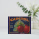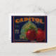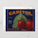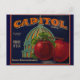 Eine großartige Abbildung aus einem Vintagen Fruchtkäfigetikett namens Hauptstadt mit dem Hauptstadt-Gebäude in Sacramento Kalifornien. Cluster von roten Äpfeln an der Seite.