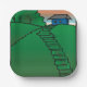 Ein blaues Haus auf einem grünen Hügel. Dieses Design wirkt auf diese Paper-Teller sehr effektiv