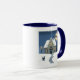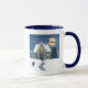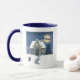 Trinken Sie Ihre Lieblingsgetränke aus dieser gemütlichen Tasse! Es zeigt eine kleine Katze auf dem Weg durch den Schnee Zuhause. Keine Sorge, dafür ist ein warmes Haus gewartet. Und oben am Sternenhimmel, nur für unsere Kätzin sichtbar, ist Santa Schlitten, der vor dem Mond vorbeigeht.