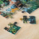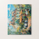 Impressionistische Gemälde eines Hauses mit Menschen, die sich an Gartentischen versammeln und die Freizeit in einer üppig blühenden Umgebung genießen.