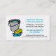 Eine stilvoll einfache Geschäftskarte für irgendeine Hausreinigung oder Geschäftshausmeister beruflich. Einfach, schwarzen Text auf einem sauberen weißen Hintergrund mit einem hellen grafischen Bild eines Eimers der Wasser- und Reinigungslösung und des Schwammes zu lesen. Einige Textschablonenbereiche zu Ihrer Kontakt- und Geschäftsinformation, wenn der Handelsname und die Kontaktperson und -Telefonnummer im hellen Blau hervorgehoben ist.