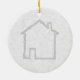 Eine Hausillustration im Grau. Diese Hausikone wurde mit einer Grafiktablette skizziert. Dieses graue Haussymbol ist auf einem hellgrauen Hintergrund mit einem gelegentlichen Muster.