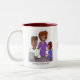 Eine Tasse mit einem lustigen Cartoon über Väter und Hausaufgaben. Originale Kunstwerke von DB Cartoon.