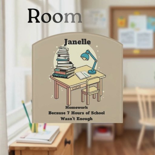 Hausaufgaben: Weil 7 Stunden Schulzeit nicht genug Text gepaart mit Ihrem Namen und einem Schreibtisch mit Büchern, auf denen Sie lesen und einen Bericht schreiben müssen, hochgepackt war.