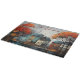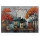 Eine skurrile Aquarellfarbe einer Häuserreihe im Herbst verleiht diesem Schnittbrett eine Herbstästhetik. Das Schneiden von Boards ist einfach, da die Jahreszeiten sich ändern und Sie so Ihre Wohngestaltung verändern können. Der Name kann geändert werden. AI unterstützte Grafik, die mit kommerzieller Lizenz erworben wurde. Artwork: RavenPrintableDesign