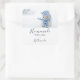 Aus Liebe personalisierte Aufkleber mit einem niedlichen Foto eines kleinen Schneemanns. Stehend im Winter mit Schneefall. Dieser niedliche kleine Typ ist in blau gestricktem Hut und Schal gekleidet.