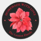 Weihnachtsfeiertag personalisierte Rundaufkleber mit einer eleganten roten Poinsettia mit Ihrem Namen und Gruß in schicken Schriften auf jedem Farbhintergrund. Alle Texte, Schriftart, Schriftart können geändert werden, klicken Sie einfach auf den Link "Weitere".