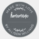 Rustikale, moderne und einfache hausgemachte Backwaren, Apfelkuchen, Kekse oder Konservenaufkleber mit dem hausgemachten Text, mit Liebe und Ihrem Namen in weißer Stilschrift und Schrift auf einem schwarzen Hintergrund. Fügen Sie einfach Ihren Namen zum Label hinzu. Exklusiv für Sie entworfen von Happy Dolphin Studio. Wenn Sie Hilfe oder passende Produkte benötigen, kontaktieren Sie uns bitte unter happydolphinstudio@outlook.com.