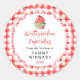 Dieser lustige und skurrile Aufkleber ist mit einem Wassermelone-Kuchen auf weißer Spitzenteile und rotem Gingham-Hintergrund ausgestattet. Es ist ideal, um Ihre hausgemachten Produkte zu kennzeichnen. Der Text kombiniert handgeschriebene Skript- und Serif-Schriftart für ein stilvolles und modernes Aussehen.