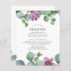 Eine moderne und elegante Klasse von 2022 Graduierungsparty Einladung mit botanischen eukalyptusgrünen sukkulent in grün und lila Aquarell. Dieses trendige Design ist ideal, um Ihr Party anzukündigen und Ihre Gäste einzuladen. Das Design hat eine moderne Typografie auf weißem Hintergrund mit einfachem Bearbeiten von Text