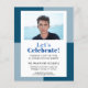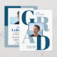 2023 BUDGET Modern Blue Trendy Typografie 2 Foto Graduation Party Einladung. Glückwunsch des Absolventen auf ihren wohlverdienten Erfolg und feiern sie mit dieser schönen und preisgünstigen Karte. Bitte beachten Sie, dass ENVELOPES NICHT enthalten sind. Die Abmessungen dieser Karte sind 4,5" x 5,6" und passen gut in einen A6-Umschlag von 4,75" x 6,5", falls vorhanden. Oder Sie können eine Umschlagoption auswählen. Alle Texte sind so vorbereitet, dass Sie sie einfach und schnell mit Ihren eigenen Details personalisieren können.