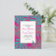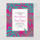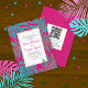 BUDGET aquamarin, magenta rosa und goldgelben tropischen Monstera und Palmen Blätter Hochzeit Einladung mit QR-Code, um UAWG online. Es enthält ein Muster tropischer Blätter in aquamarinem Blau mit goldener Kontur auf fuchsienrosa und Ihr Text in einem weißen Rahmen. Auf der Rückseite befinden sich ein goldenes Polka-Punktmuster auf magentafarbenem Hintergrund und der QR-Code.