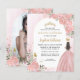 Blumenrot Rosa Golddruckerin Gown Dress Glitzer Sparkle Tiara Crown Butterfly 15. Geburtstag Quinceañera Einladung