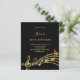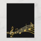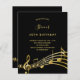 Eine trendige, moderne, 70. (oder jedes Alter) Geburtstagsausweis für Damen und Herren. Klassischer schwarzer Hintergrund und Musiknoten, goldfarbene Buchstaben. Personalisieren Sie Ihre Party-Informationen und fügen Sie sie hinzu. Zurück: Schwarze Imitate Gold Musiknoten.
